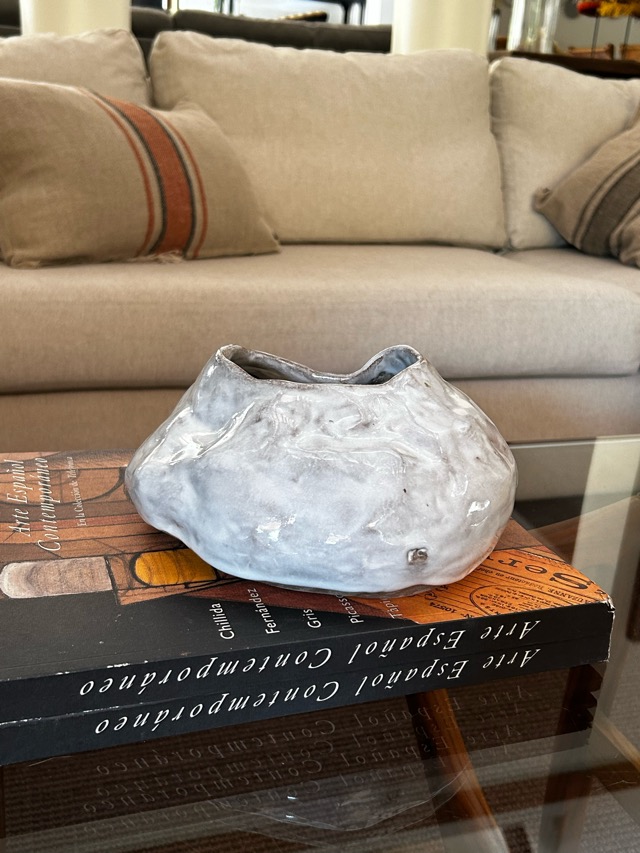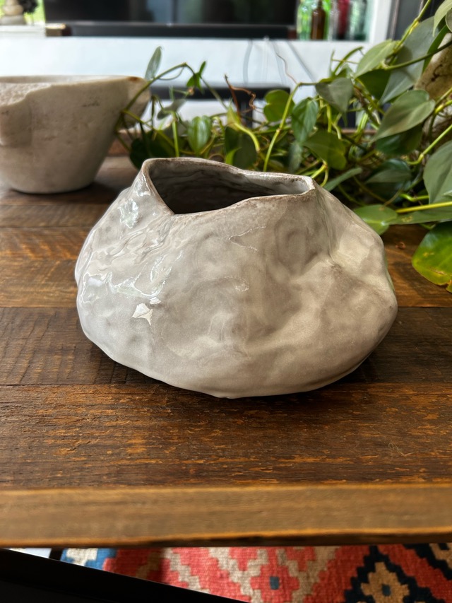 Cuenco de cerámica gres color blanco y gris.