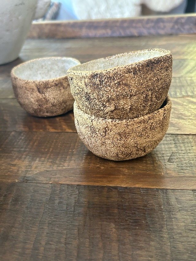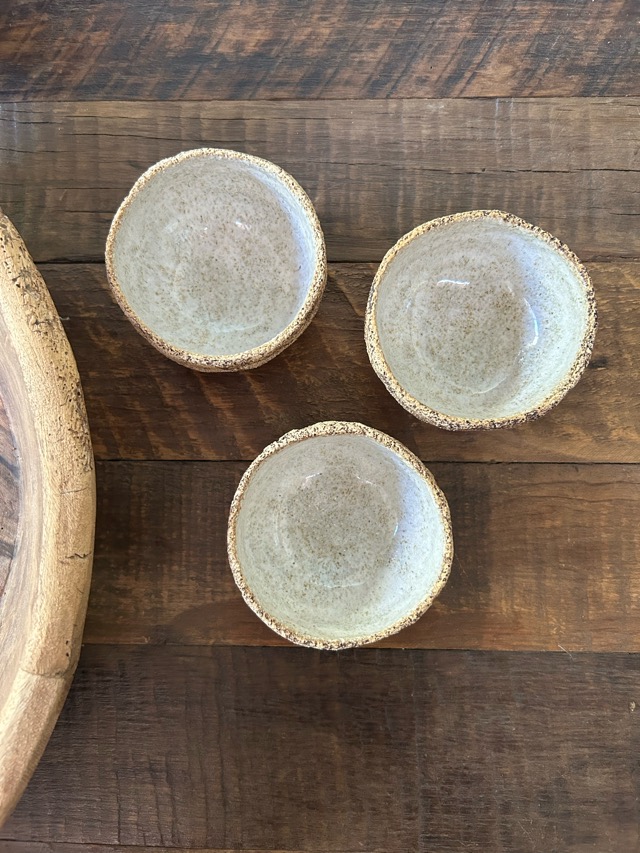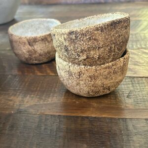 Set de 3 pocillos hechos en cerámica gres esmaltados en su interior. Se pueden usar en horno y lavavajillas.