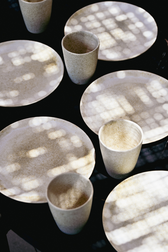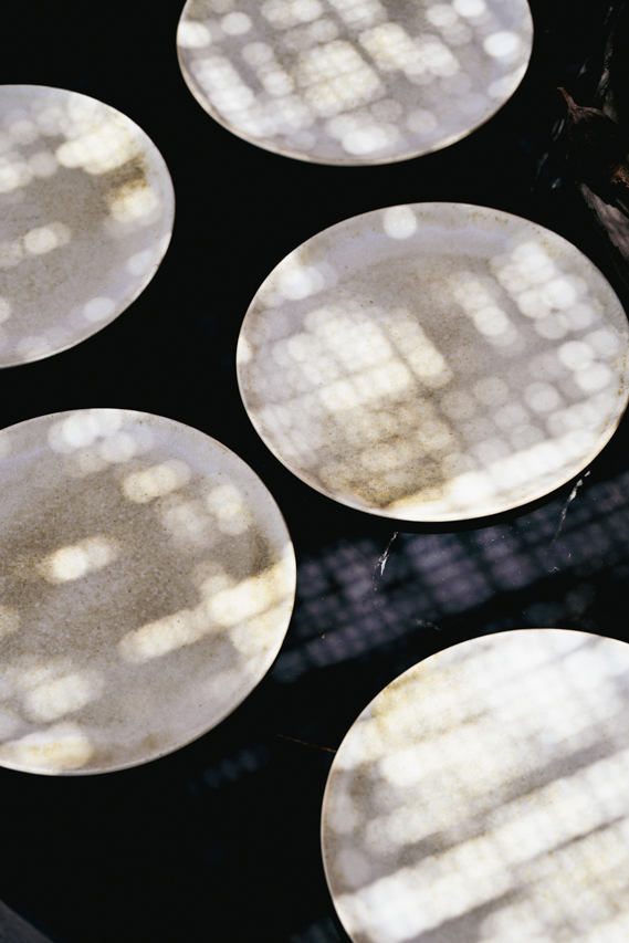 Set de 6 platos hechos a mano en cerámica gres esmaltados color crudo.