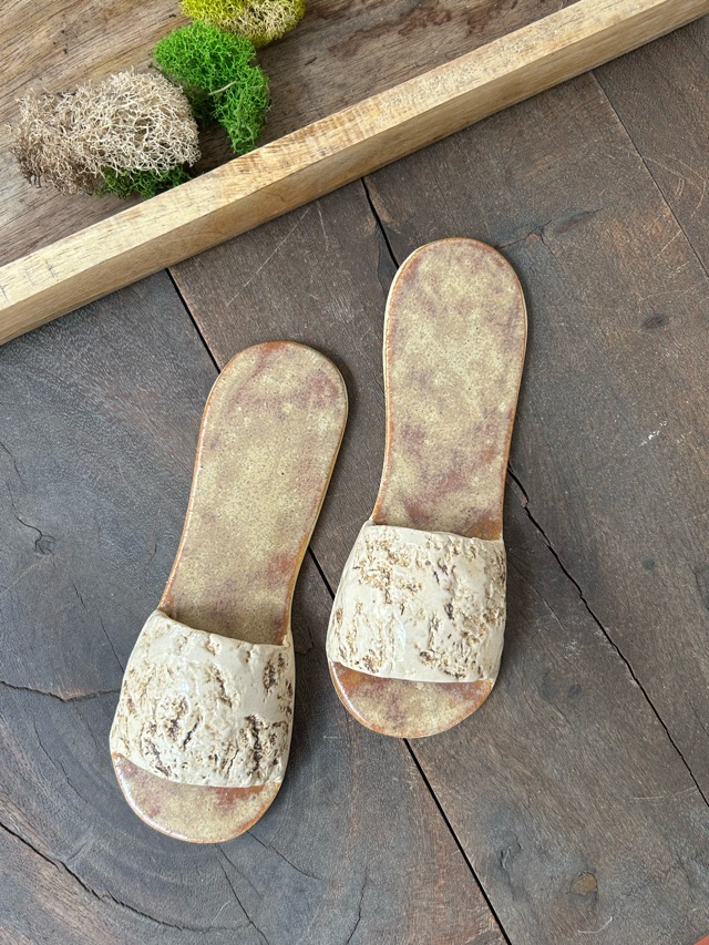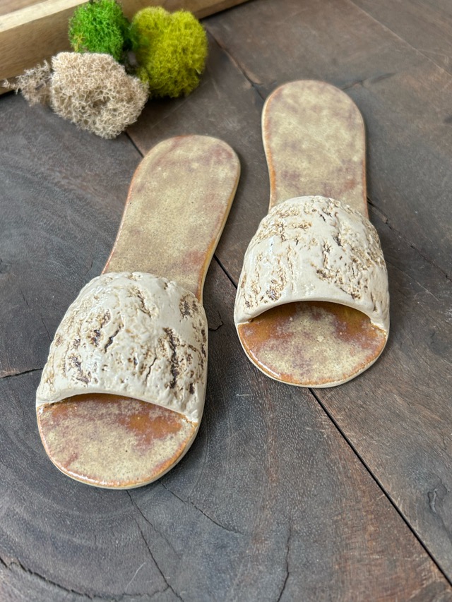 Zapatos decorativos hechos a mano en cerámica gres.